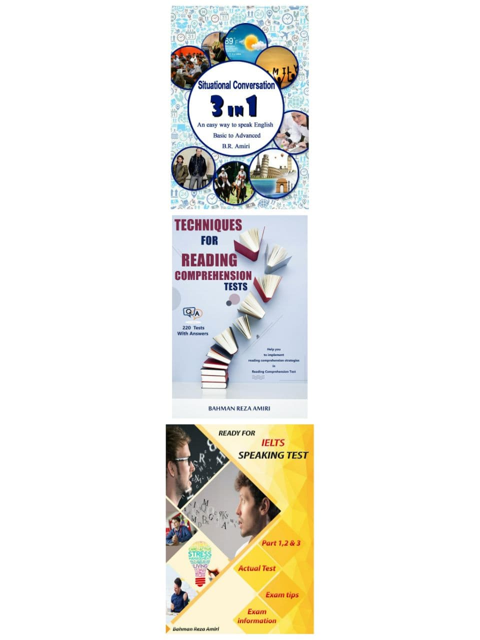 1- تالیف کتاب Situational conversation (1395) 2- تالیف کتاب Techniques for Reading Comprehension tests (1399) 3- تالیف کتاب Ready for IELTS Speaking Test (1400)